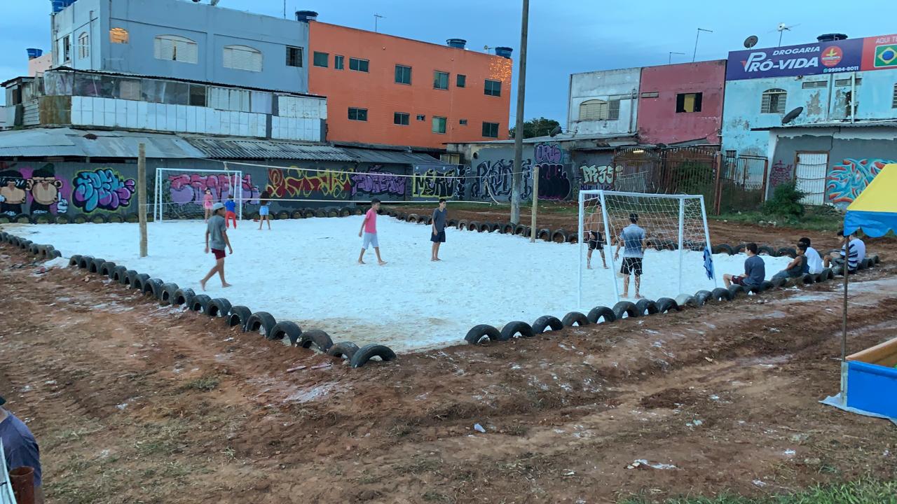 O local na QNO 9/11, do Setor O, ganhou um campo de areia, grafite, placa, lixeiras, bancos, demarcação de quadra esportiva e traves. No espaço foram retirados mais de 10 caminhões de lixo e entulho.