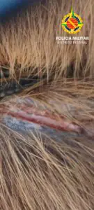 No local, foi constatado que se tratava de uma capivara adulta que apresentava uma cinta plástica em torno do pescoço, proveniente de descarte irregular de lixo, causando lesão por fricção.